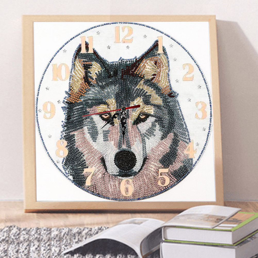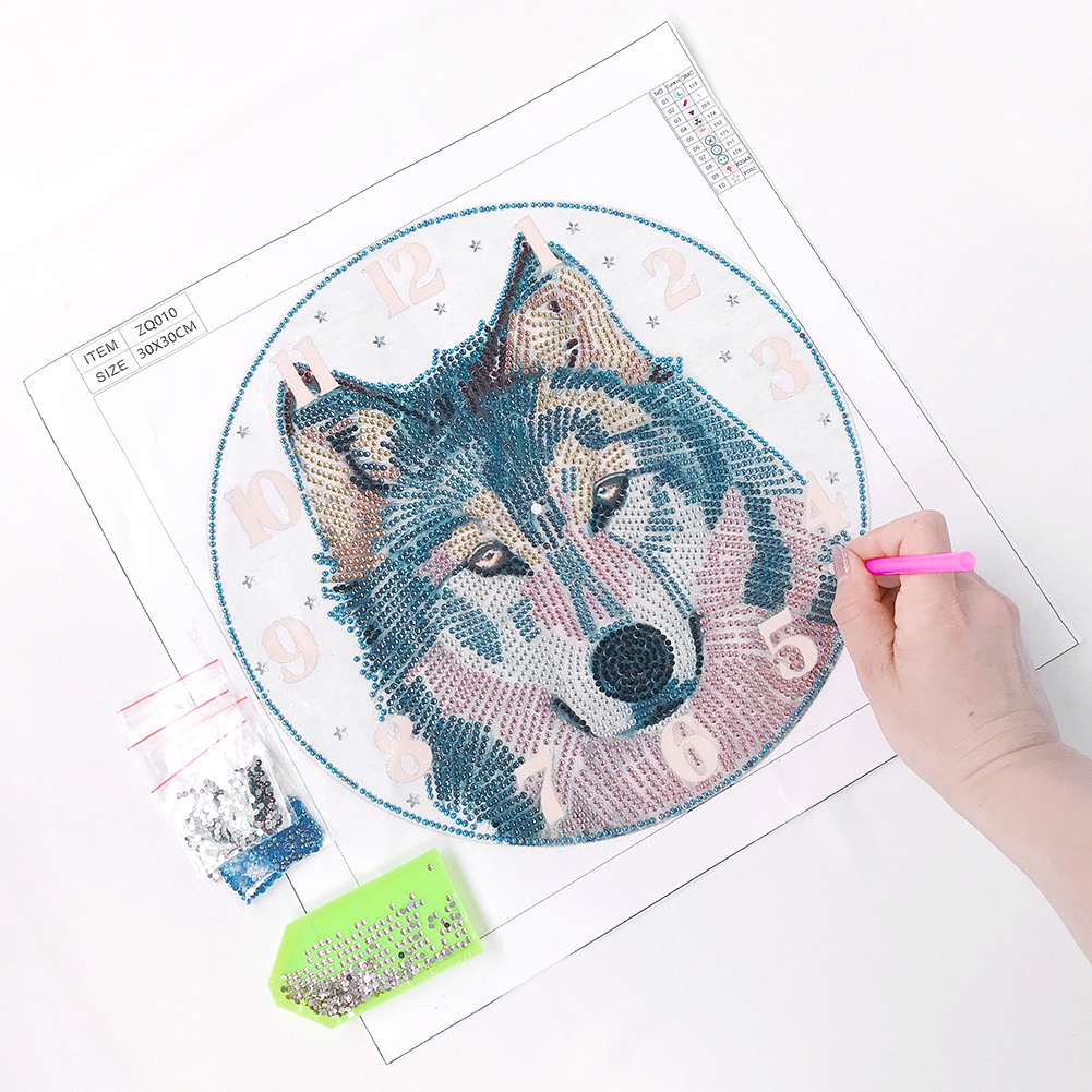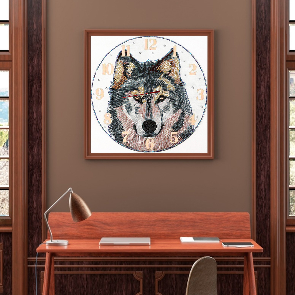 Wolf Clock Mosaic Part Special Shape Diamond DIY Painting Kit Gifts